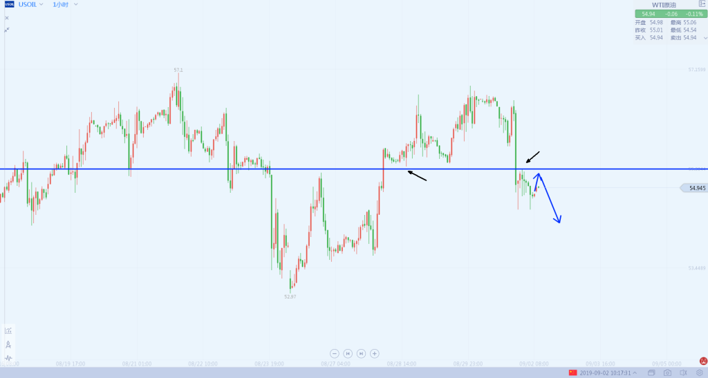 3:原油55.3第一次反抽高点位置做空,损在55.9,目标下看53.8。