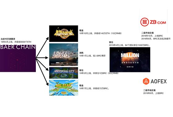 2018年10月,BRC上线ZB.com交易所,进入二级市场。2019年1月,上线《超级战士》;2019年3月,上线《环球城》;