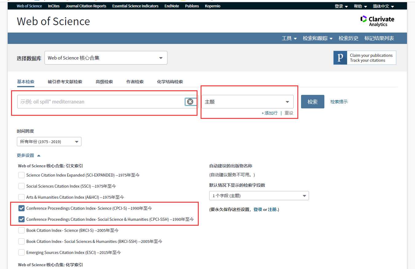 访问 Web of Science(CPCI-S/CPCI-SSH)数据库检索课题(需在学校内网或图书馆)