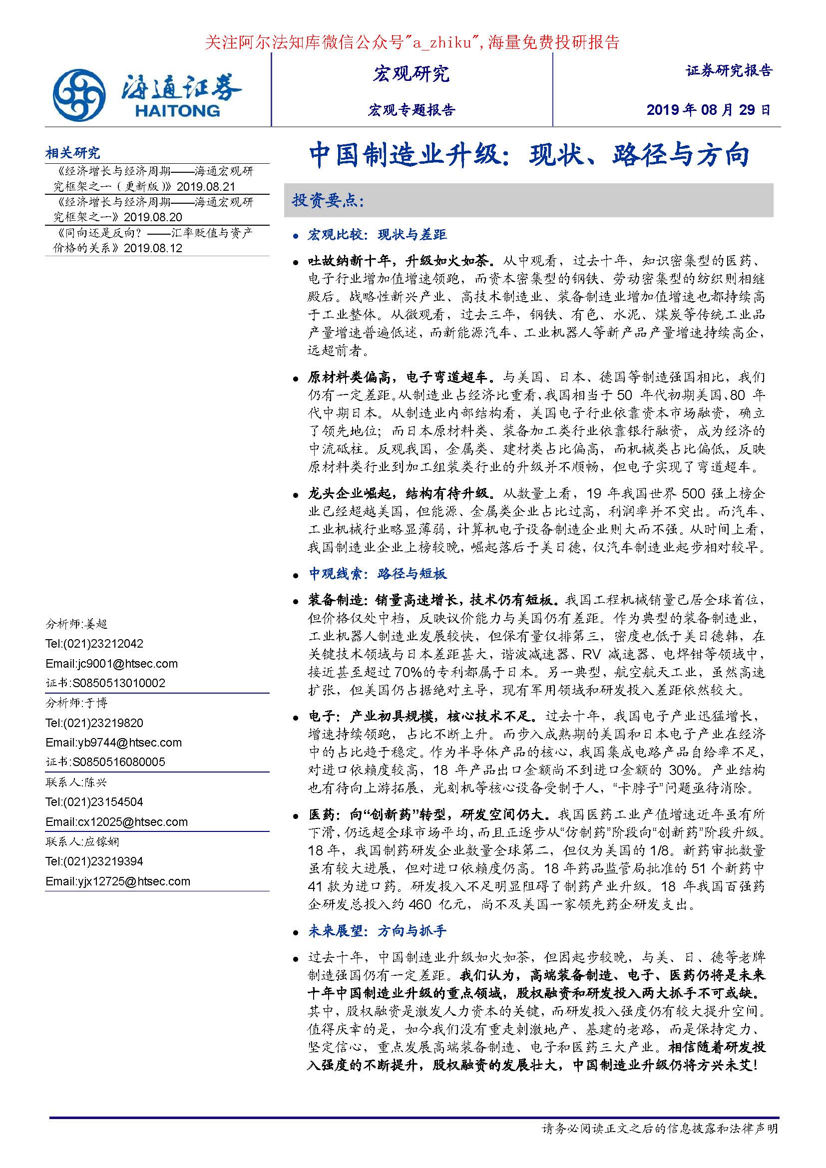 宏观专题报告:中国制造业升级,现状、路径与方向-20190829-海通证券-22页.pdf