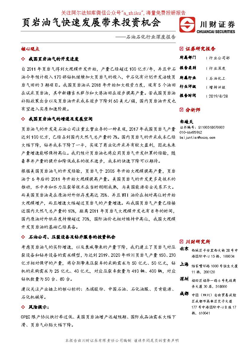 石油化工行业深度报告:页岩油气行业快速发展带来的投资机会-20190828-川财证券-25页.pdf