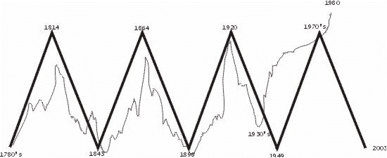 Let us take a look at a long-term chart illustrating the Kondratieff cycle: