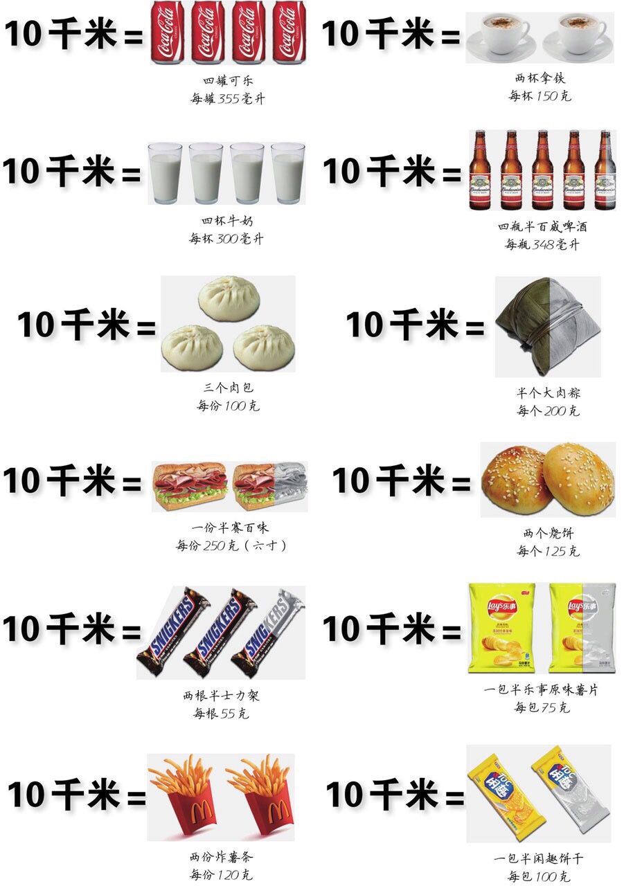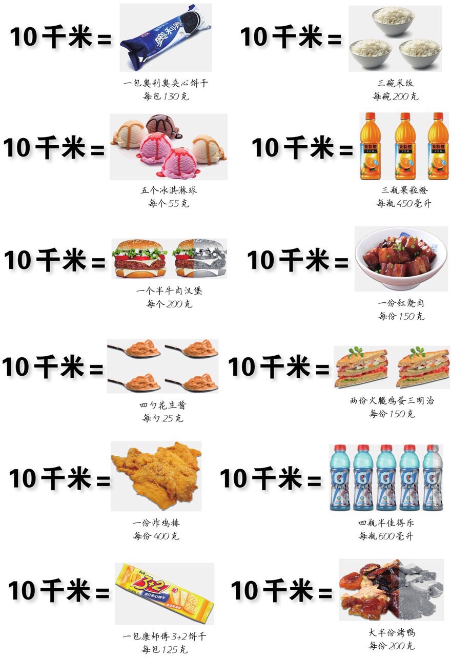 慢跑10千米,等于消化了这么些个食物的能量了