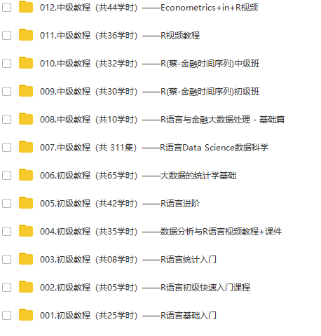 个人收集的R语言视频教程集合,从入门到精通!