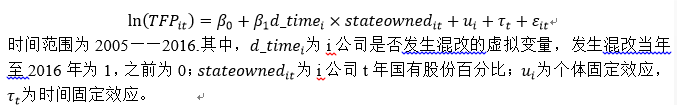 模型和解说如下图。我现在想出来两个指令,stata都能跑出来结果,但不确定哪个是对的,或者都不对。具体指令(1):xtreg lntfp c.stateowned#d_time, fe r ; (2) : xtreg lntfp c.stateowned#d_time i.d_time , fe r。
