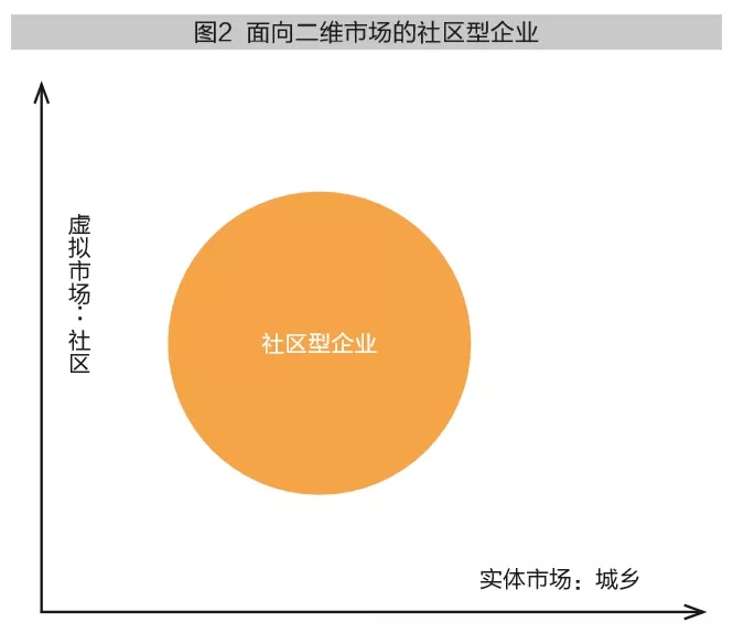 数字经济时代的企业需要兼顾实体和虚拟两个市场,在实体市场上延续并创造新的实体消费,同时辅以在虚拟层面释放大量的数字消费,这种类型的企业我们把它称为社区型企业(如图2所示)。社区型企业能够把分布于不同城市中的员工、合作伙伴、消费者等用虚拟社区的方式整合起来,并用社区的组织方式把所有的利益相关者、产品、服务链接在一起。