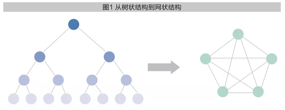 随着社交网络的出现,进一步推动人与人之间形成了一种网状结构(见图1)。点到点(P2P,Peerto Peer)等技术手段,更使得在网络空间(Cyber Space)中人与人之间更加平等。随着网络人群的不断扩大,人类社会结构也开始不断演化,表现出两个效应:
