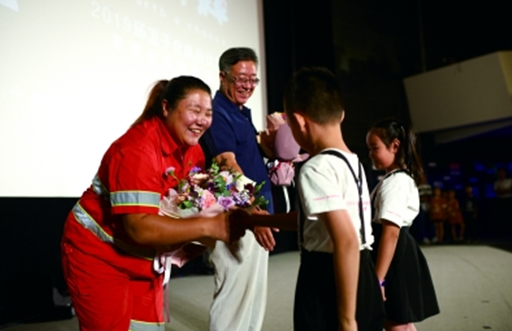 闭营仪式上,一线环卫工人代表身着清一色的橙黄制服整齐列席,他们代表环卫人接受了“环卫子女成长计划”最崇高的敬意。