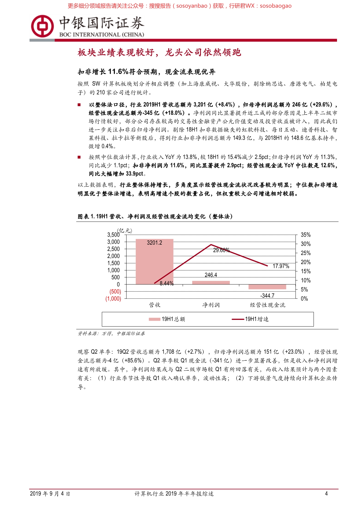 计算机行业2019年半年报综述:成长底色未失,利润与现金流添彩