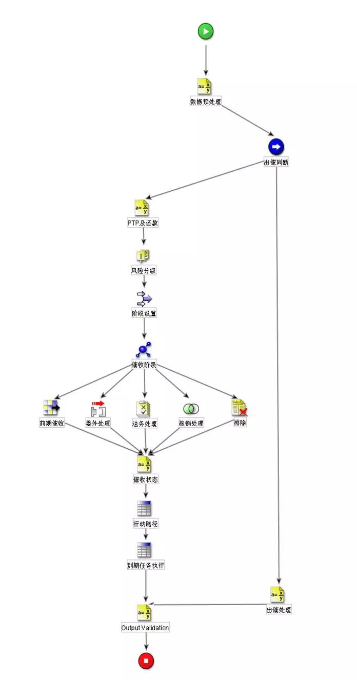 决策引擎是一套以工作流为导向的系统,里面所涉及到每个项目都是以业务流程来运作的,比如上图中所示,就是一个完整的业务流程。
