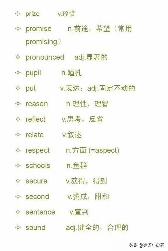 阅读遇到熟词生义真的最头疼,明明认识却不知道它的另外一个意思,与其出了考场一查词典开始捶胸顿足,不如趁现在背起