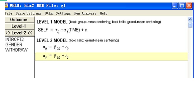 刚学多层线性模型和HLM软件,看到的资料里,在用HLM做个人的多次测量的发展模型时,如下图,第一层以时间为自变量,self为被解释变量。如果想加入一些随时间变化的解释变量,比如在各个时间点(0,1,2,3)上个体的收入,应该如何设置数据结构?是否和self一样的结构呢?在HLM软件里,是和time一起加入到一层解释变量吗?是否就不需要加time这个变量了?