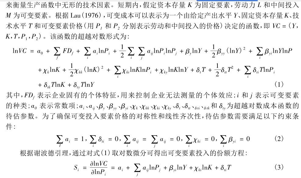 但我的数据条数由近六万条,转换时候会报错,上传每年数据的前5条以供参考,主要问题是如何在Stata中表达出来图中的公式3,求偏导用margins命令是没错,但偏导之后求得的数值为一个固定值,无法作为一个方程放进似不相关回归方程中。思考学习多日,无果。望各位老师不吝指教啊!