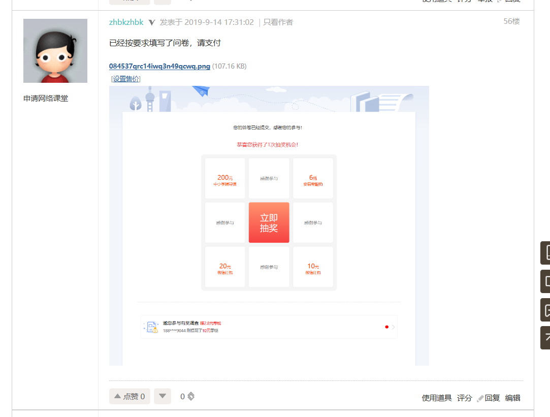 zhbkzhbk 发表于 2019-9-14 17:31 已经按要求填写了问卷,请支付