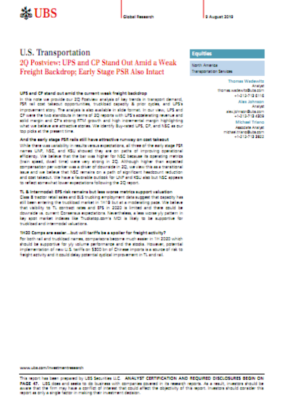 瑞银-美股-交通服务业-美国二季度交通运输业前瞻:UPS和CP在疲弱的货运背景下脱颖而出.pdf
