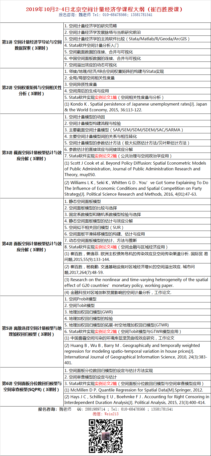 【学习笔记】10.2-4北京Stata空间计量现场班报名ing~ 9.17晚7点半空间计量直播 ...