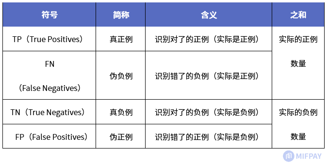 以上四个识别结果数值(TP、FP 、TN、FN)就是常用的评估模型性能优良的基础参数。在进一步详细说明TP、FP 、TN、FN各符号的含义之前,我们先来了解正例(正样本)、负例(负样本)的概念。