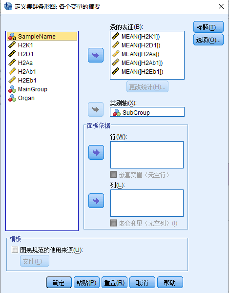 花间邪派 发表于 2019-9-11 16:40 建议重新整理一下数据,按三个变量来,一个是数值变量,另外两个是分类变量,分别是小组类别和变量类别