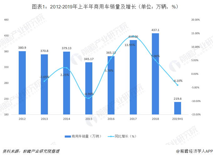 1、2019年上半年中国汽车行业持续遇冷,商用车销量同比下降