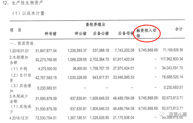 租赁小哥才知这家上市公司早已开了先河,做起了母猪租赁,时间甚至比奶牛租赁不知早到哪里去了!如果生物资产融资租赁无法说明租赁物是二师兄,毕竟养猪的捎带养些牛、羊、鸡、鸭也正常,那么,2018年的审计报告,则将租赁物明晰的指向二师兄无疑: