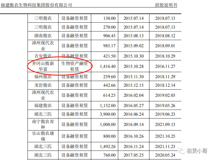 但到底哪家(些)同业直接和傲农生物做了以二师兄为租赁物的业务,尚未查到,目前可确定的是傲农生物确实做了以生产性二师兄为租赁物的业务。