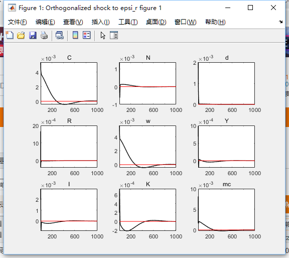 本人刚自学dsge想做一个货币政策与宏观审慎政策的研究,做出来的脉冲响应图是这样,冲击发生后有一个很大的波动,在1000期后才能收敛