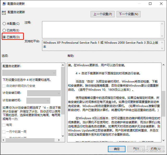 以上只是永久关闭 Windows 10 自动更新的第一步操作设置,接下来还要关闭自动更新计划程序,“Win + R”调出运行菜单,输入“taskschd.msc”,在任务计划计划目录中找到 Microsoft——Windows——Windows update,在右边所选项中设为“禁用”。