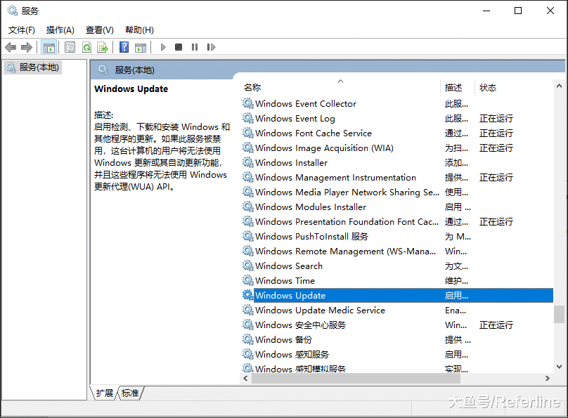 “Win键 + R”在运行框中输入“services.msc”后点击确定打开服务,找到 Windows Update。