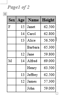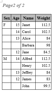 column sex age name height weight ;