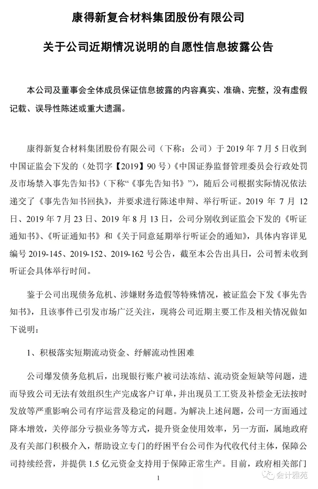 康得新:已聘请会计师开展证监会阅卷及申辩、听证准备工作