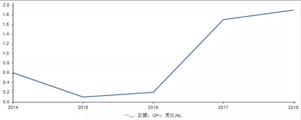 图六:2014 -2018 期间欧盟(欧元区)消费者物价指数(CPI)年率图