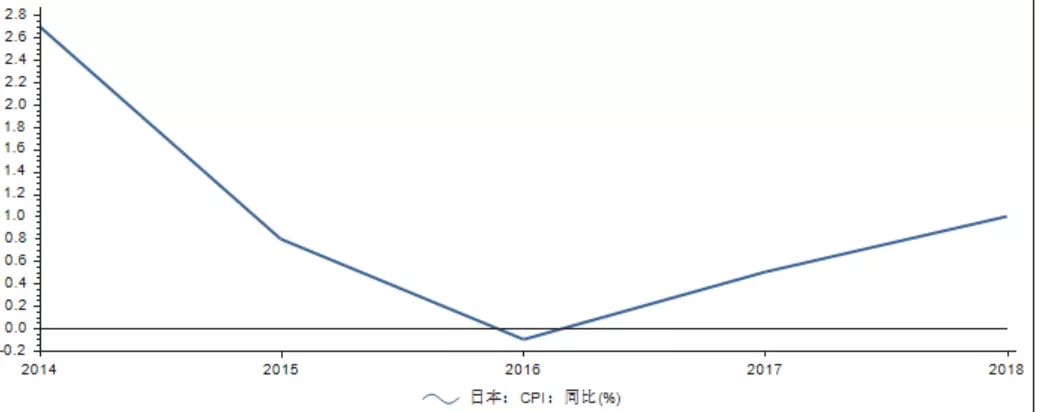 图七:2014 -2018 期间日本消费者物价指数(CPI)年率图