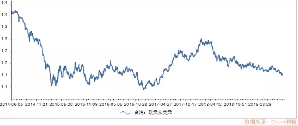 图三:2014.06-2019.09期间欧元兑美元日汇率图