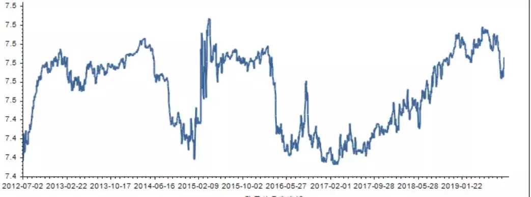 图二:2012.07-2019.09期间欧元兑丹麦克朗日汇率图