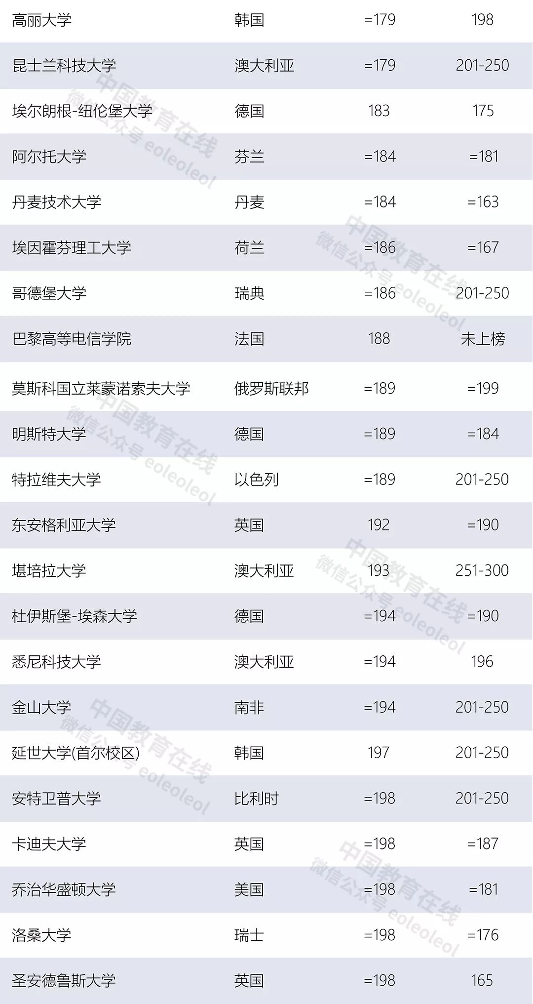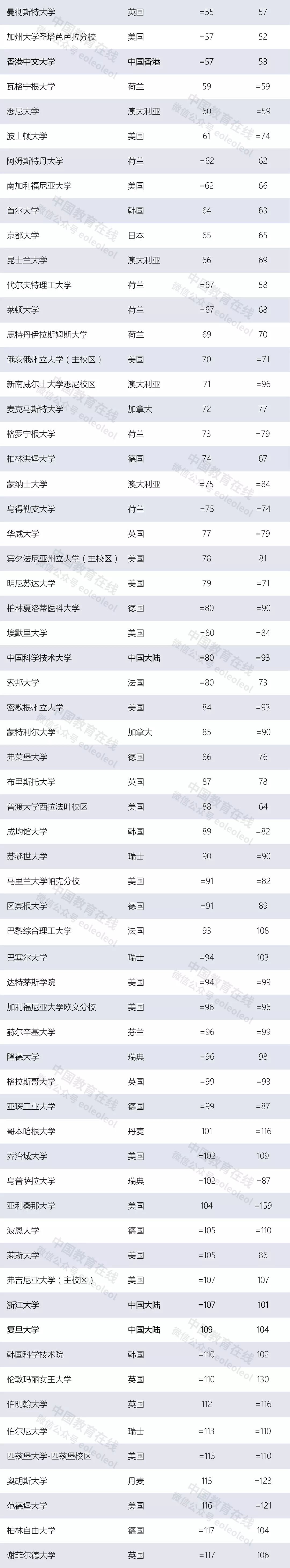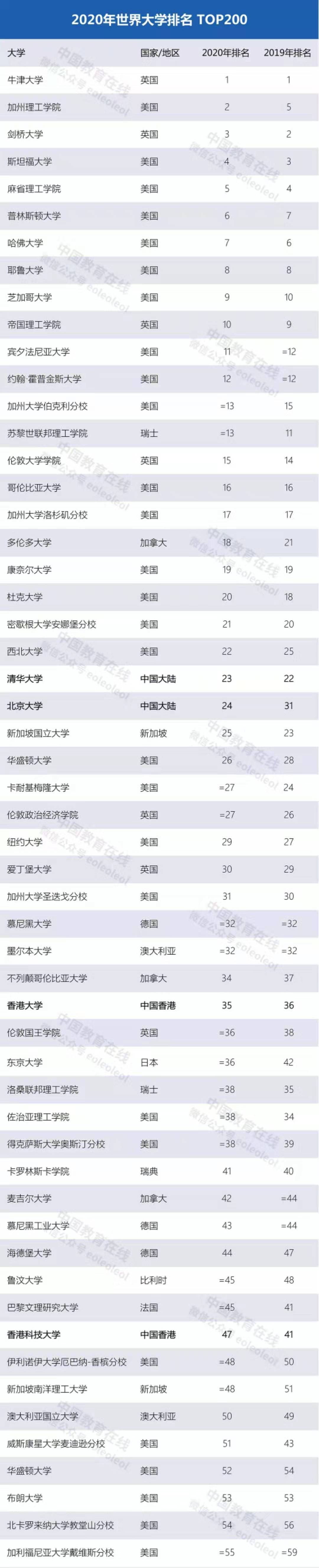 附:2020年世界大学排名