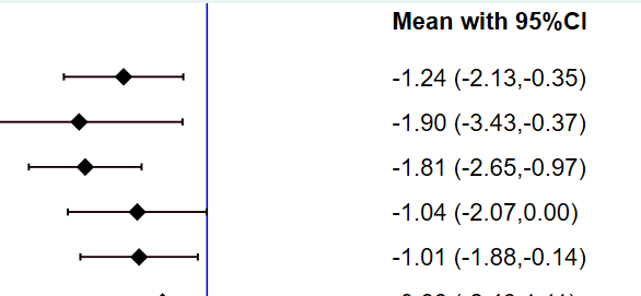 直接比较显示有效,一致性模型显示该项P=0.049,网状森林图此项下线为-1.04(-2.07,0.00),会不会是结果保留2位小数,所以才变成0.00的呢?求大神指点