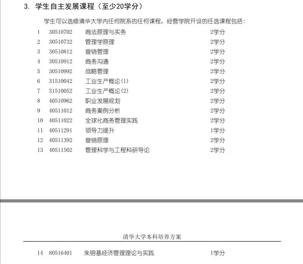 学生可以选修清华大学内任何院系的任何课程。经管学院开设的任选课程包括: