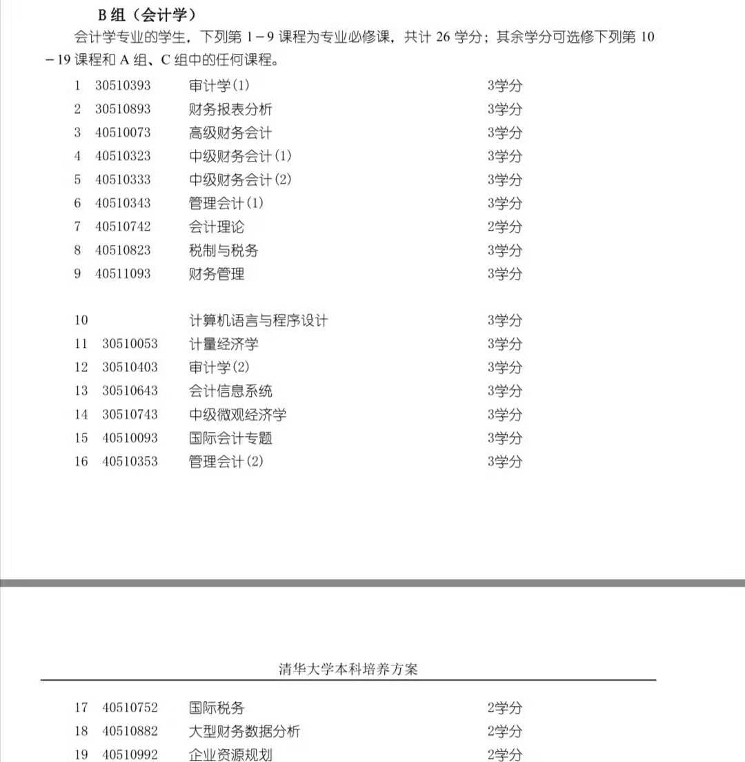 会计学专业的学生,下列第 1-9 课程为专业必修课,共计 26 学分;其余学分可选修下列第 10