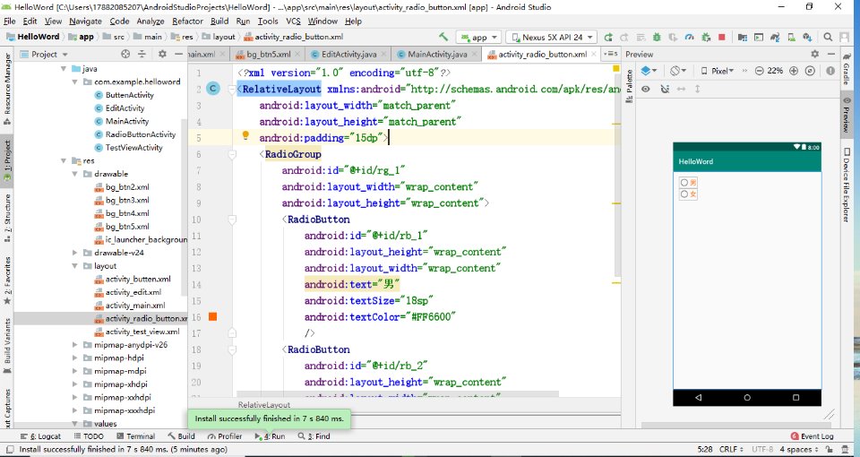 【学习笔记】对着视频敲的Android studio 的代码,今天学习radio button,需要 ...