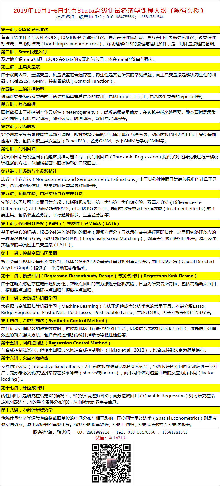 如果你还没想好即将到来的国庆长假应该做什么,不少你的同辈、前辈甚至晚辈都已经计划好了——那就是,给自己充电计量经济学,参加陈强老师的高级计量经济学及Stata六天现场班!