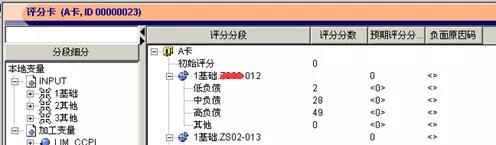 1.评分模里的变量是需要分组设置,且变量间的设置的上下区间是卡在【lo,数值】与【数值,hi】的范围内,同时在不同的区间输出对应的分值。