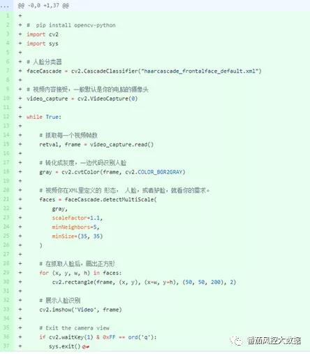 最后跟各位同学分享下,人脸识别的具体的代码实现。刚提到某些库目前已经非常成熟,我们只需要直接调用相关模块即可: