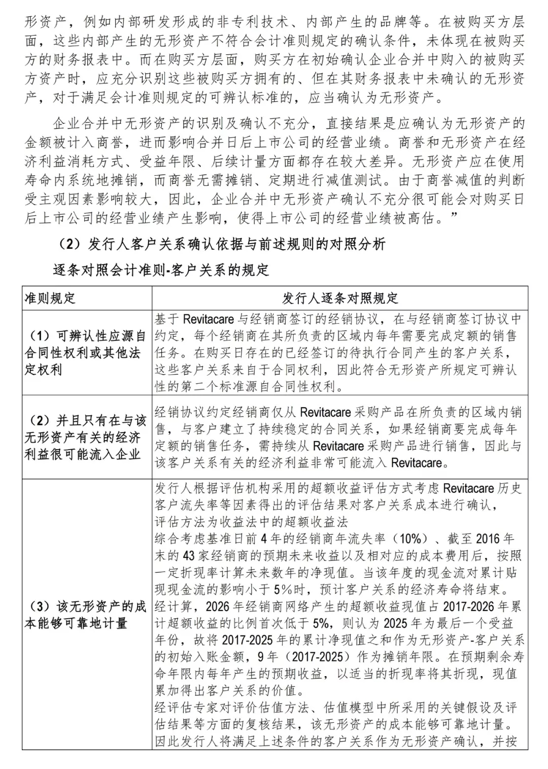 客户关系作为无形资产的问询回复