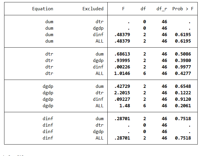 【请各位大神帮帮我】格兰杰因果检验分析