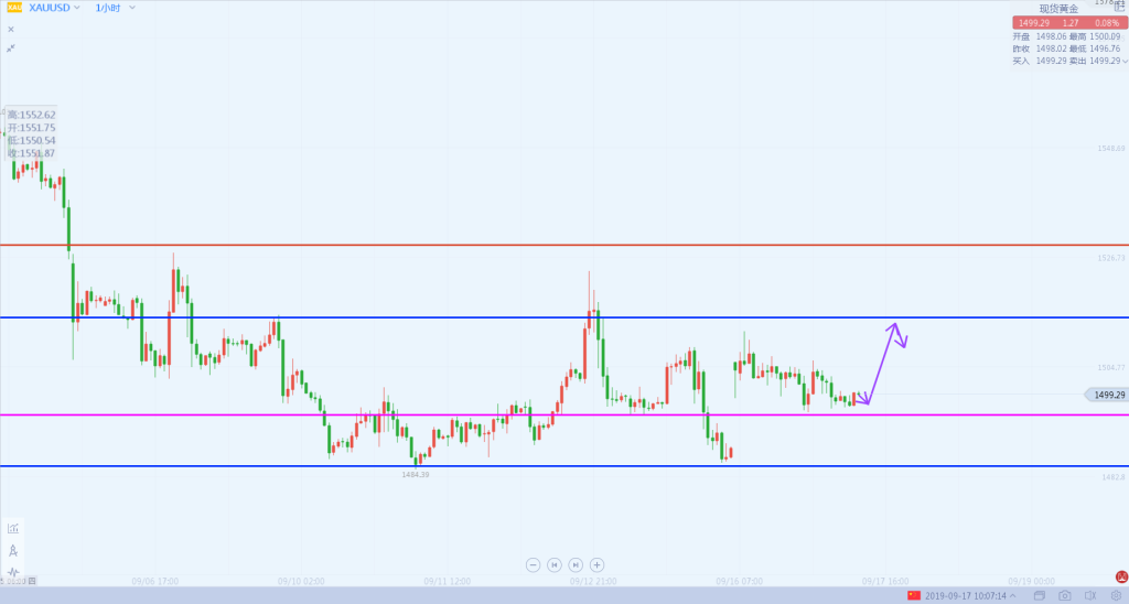1:黄金1499直接做多,损在1494,目标看向1508。