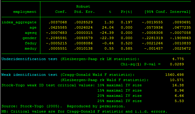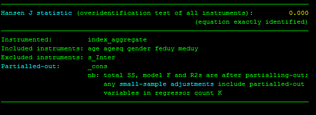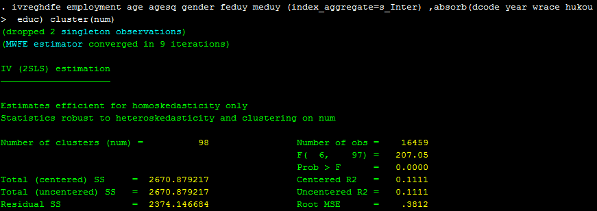 但是回归结果只有ols estimation,没有您的iv estimation,请问您的安装程序是怎样的呀
