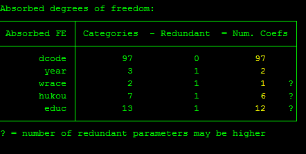 请教楼主,在进行内生性检验时,是对比ivreghdfe结果与reghdfe结果中的hausman结果是嘛?以及我在输入ivreghdefe  y  controls (核心解释变量=工具变量),absorb(固定效应等)。之后stata一直汇报 struct ms-vcvorthog  undefined这是什么原因?