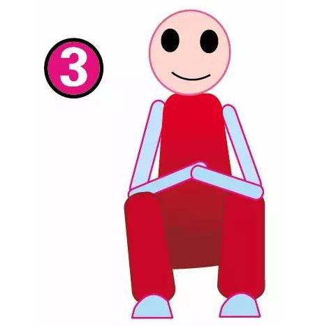 二、并腿蹲:双脚并拢,然后双膝弯曲,大腿腿腹与小腿腿腹紧贴在一起。保持1―3分钟。