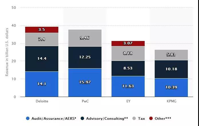 2017年德勤的咨询业务收入就已经超过了最负盛名的审计,占德勤总收入的37%。