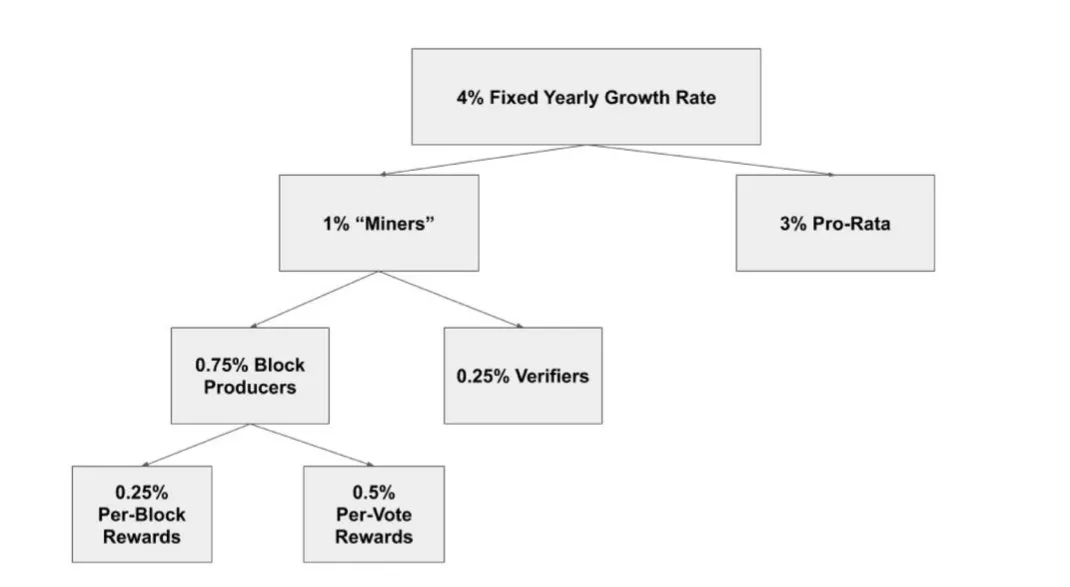 2、每年增发 4%,由 SOV 持有人和出块节点共享
